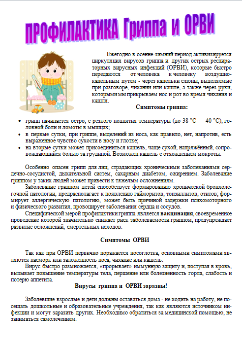 проведение санитарно-противоэпидемических и профилактических мероприятий.
